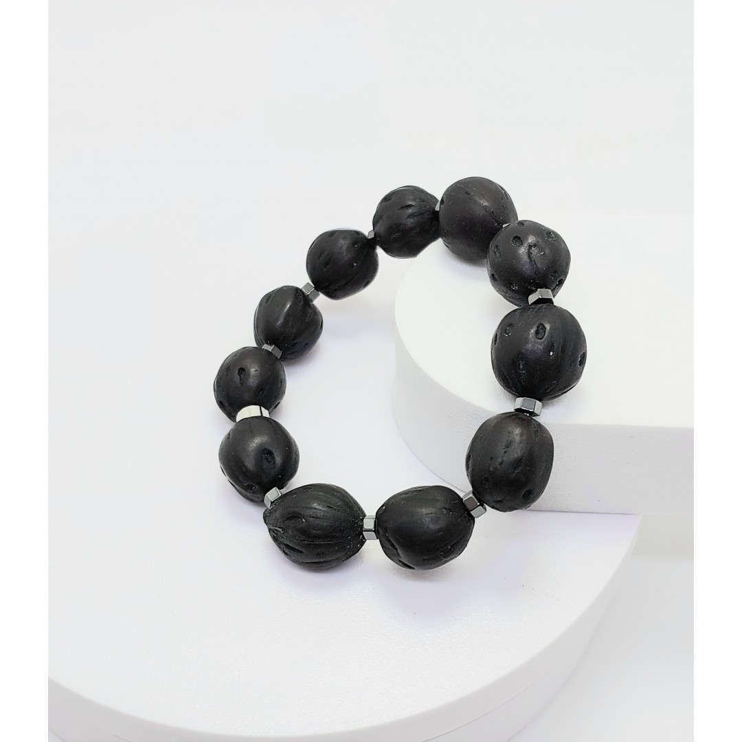 *Bilekliğimiz, 12-13mm tohum şekilli siyah andız ağacı parçaları ve hematit taşı ayraç kullanılarak oluşturulmuştur.