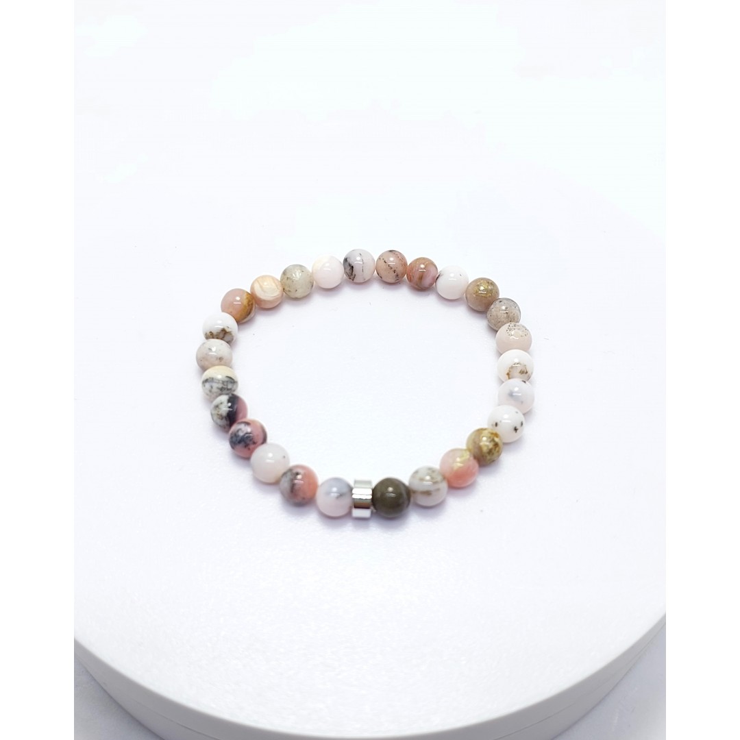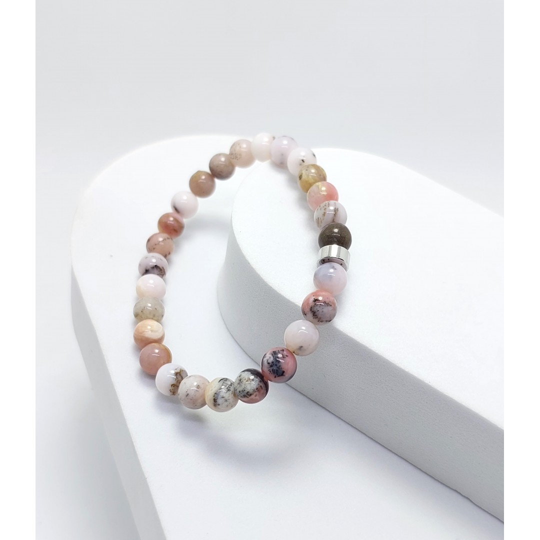 *Bilekliğimiz, A+ kalite 6 mm küre kesim pembe opal taşları kullanılarak oluşturulmuştur.