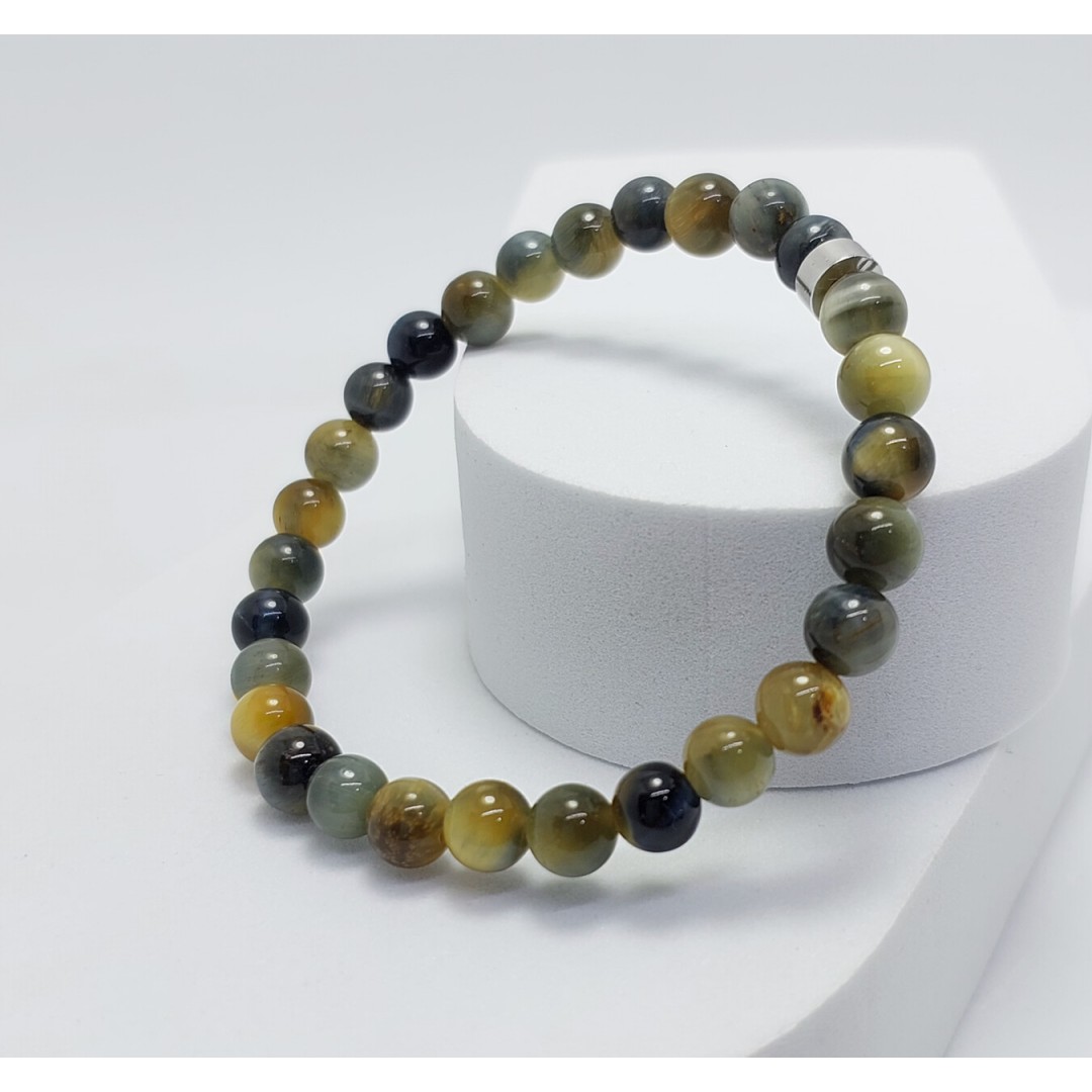 Doğanın büyüleyici renk oyunlarını bileğinizde taşıyın: Alaca kaplan gözü taşıyla tasarlanmış bu özel bileklik, hem şıklığınızı hem de enerjinizi güçlendiriyor!