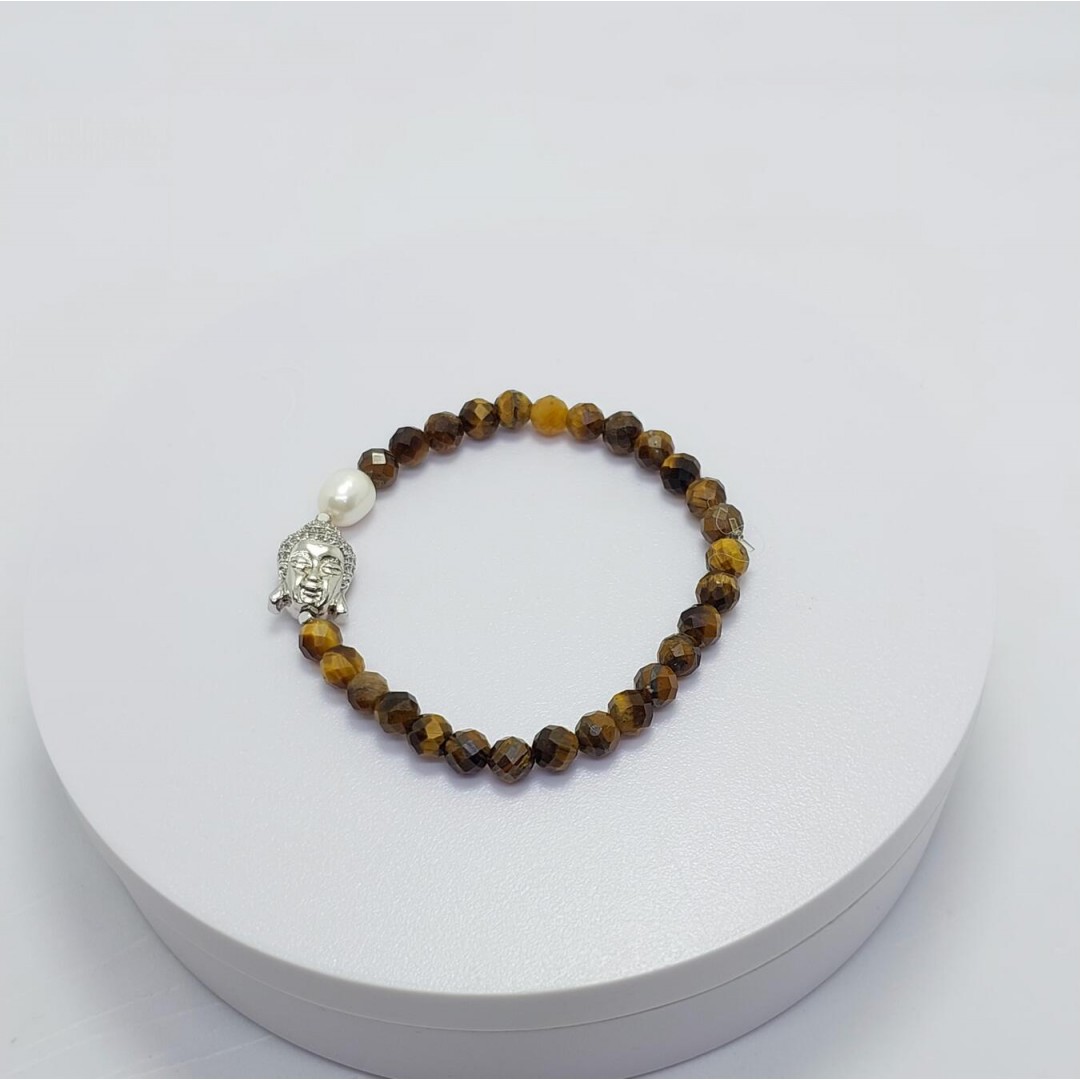 Güç, zarafet ve spiritüel anlamı bir arada sunan bu özel bileklik; kaplangözü taşı, inci ve çelik buda motifiyle hem şıklığınızı tamamlar hem enerjinizi dengeler.