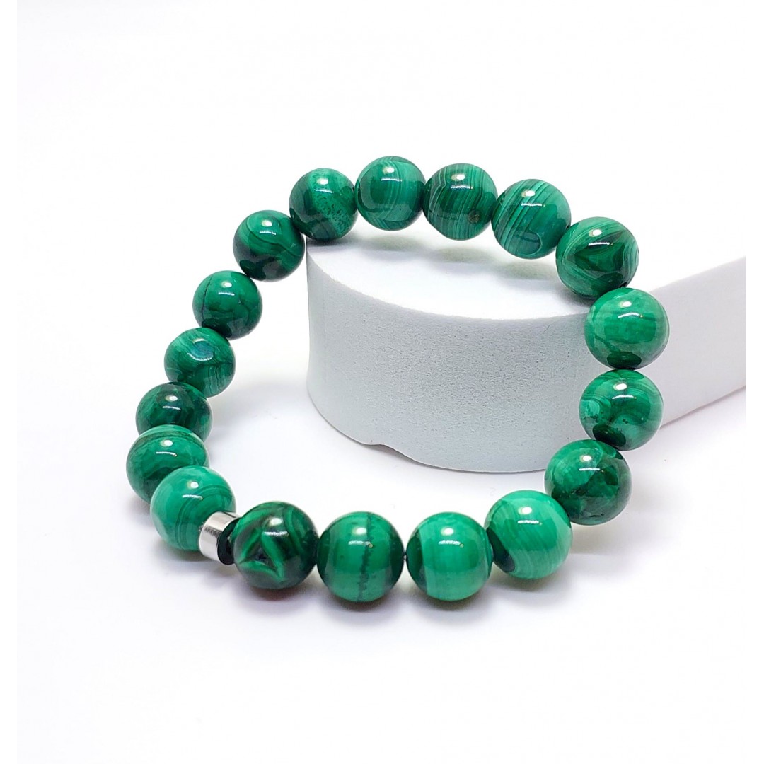 Doğanın en canlı yeşil tonlarını taşıyan 10 mm malahit taşlarını birleştirerek hem enerjik hem de zarif bir bileklik tasarladık.