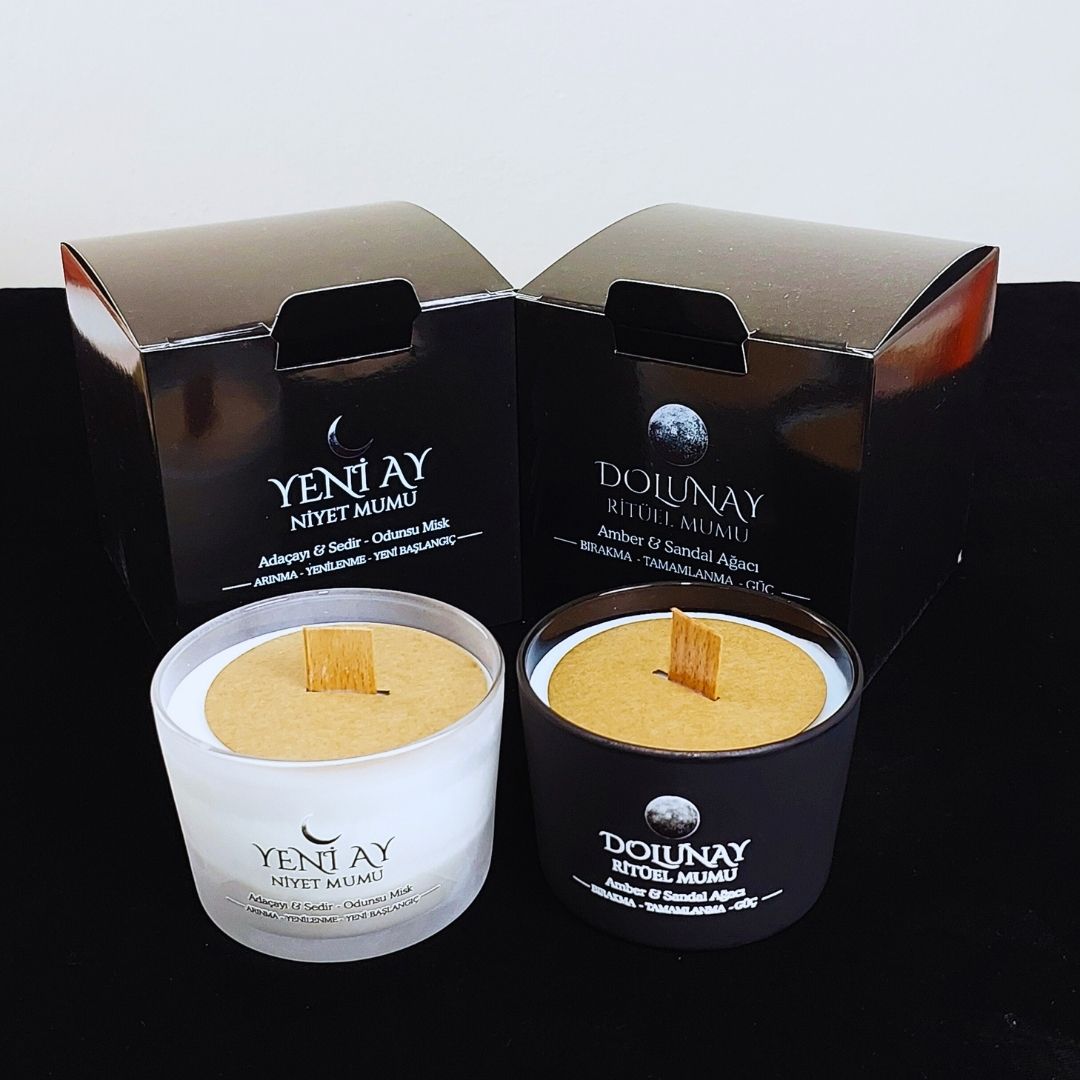 Enerjinin tamamlandığı, fazlalıkların bırakıldığı güçlü an.Bu özel Yeni Ay & Dolunay mum seti, yalnızca bir mum değil…